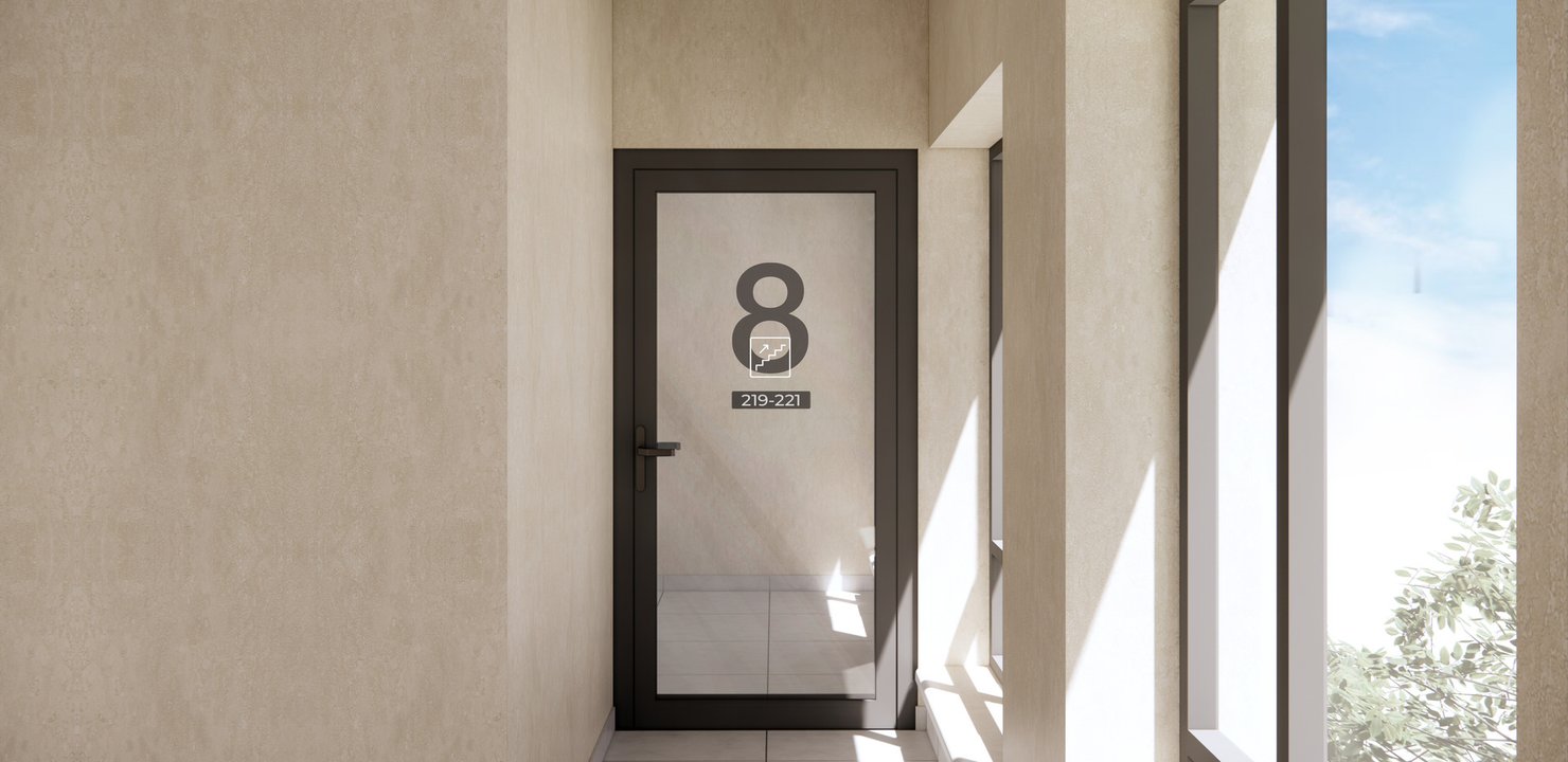 Повторяет концепцию природных оттенков в архитектуре комплекса и выполнена с применением антивандальных материалов. Вход предусмотрен с уровня тротуара для удобства мам с колясками.
