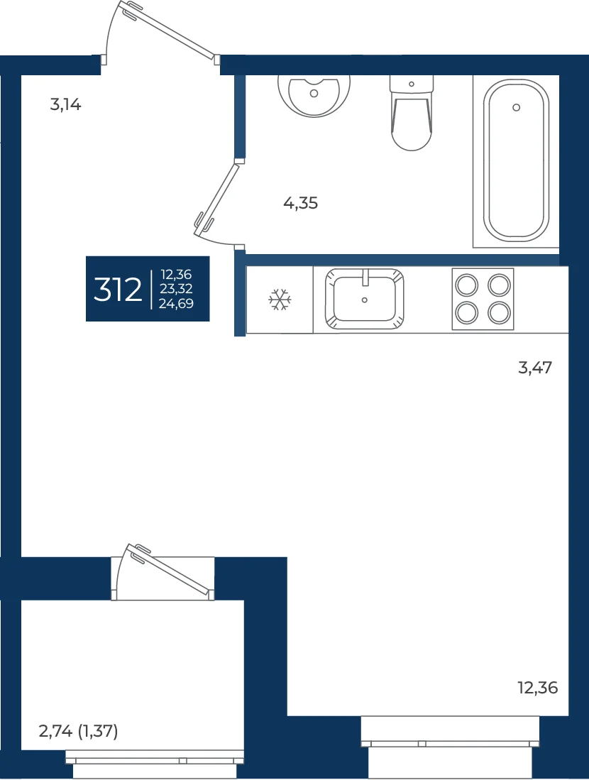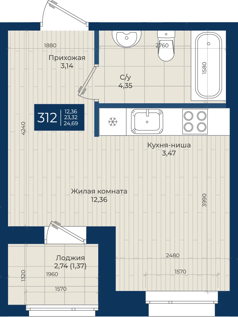 Студия  24.69 м2