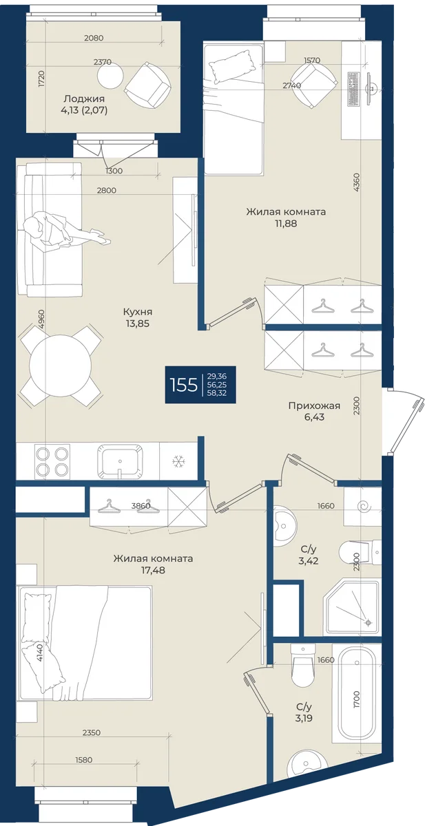 58.3 м2