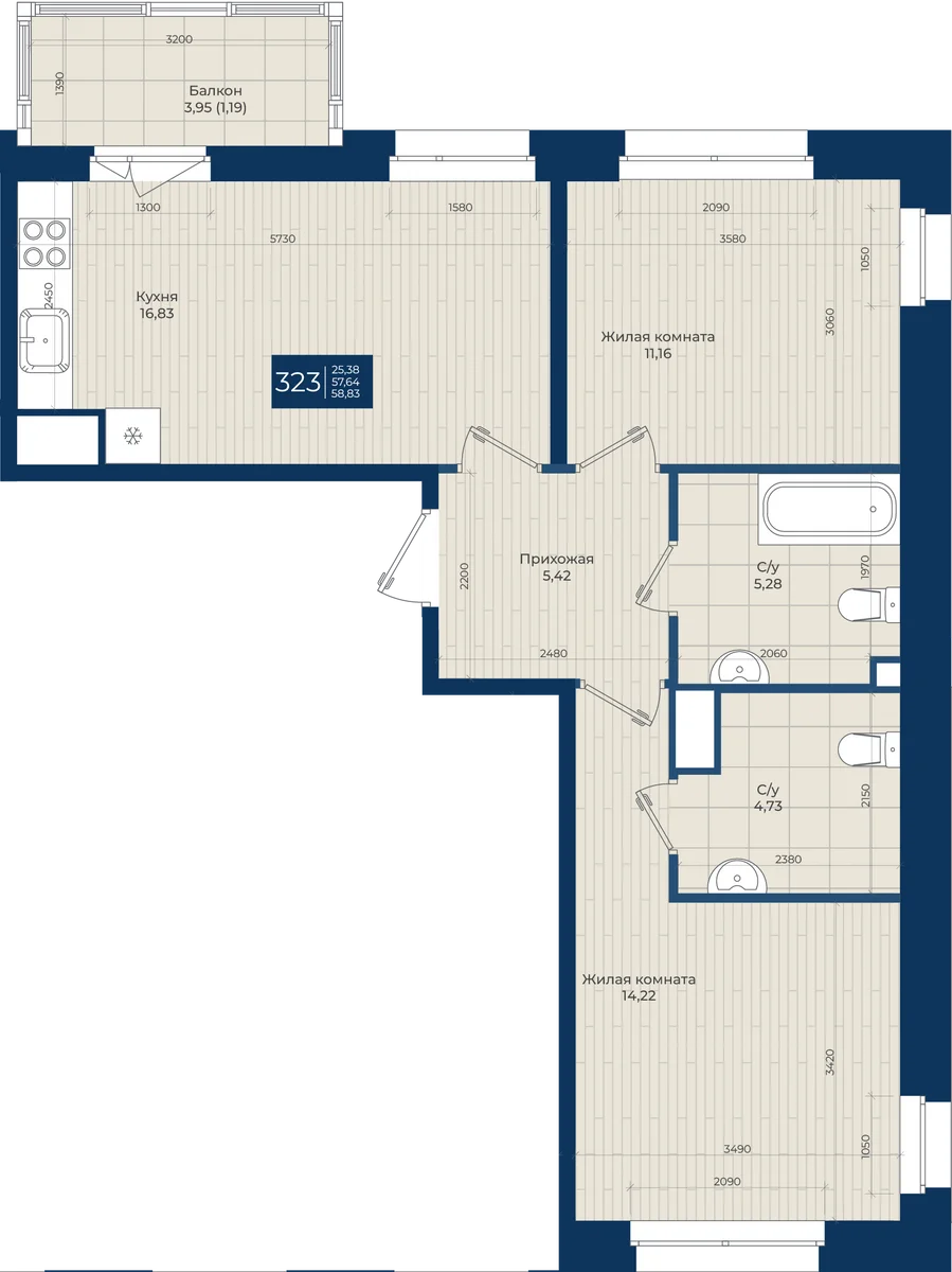 58.83 м2